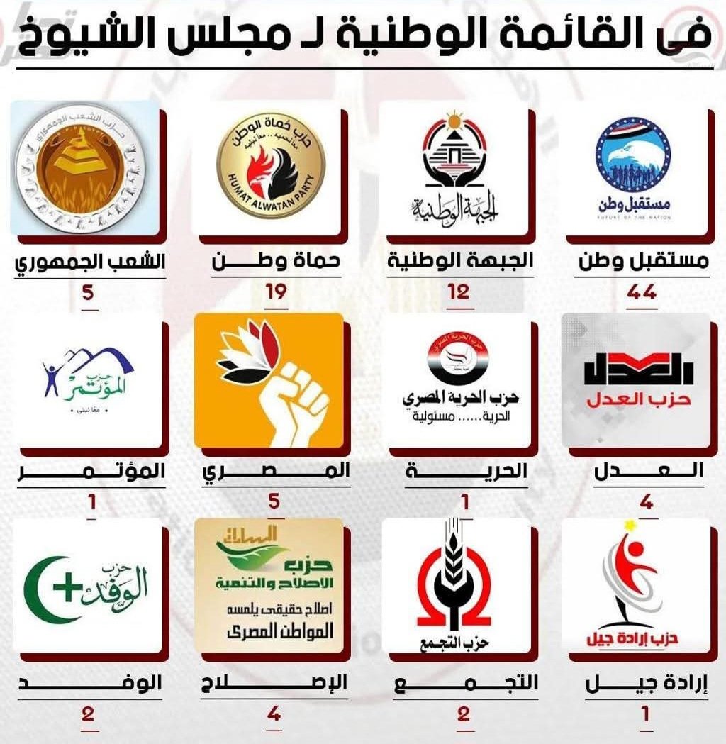 القائمة الوطنية وخريطة الأحزاب ونصيب كل حزب من المرشحين المحتملين لمجلس الشوري . ...المزيد من التفاصيل