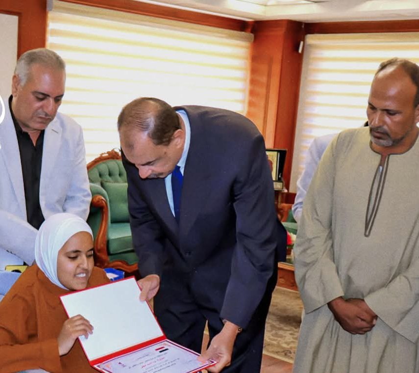 محافظ سوهاج يكرم الطالبة آية مهني الأولى على المحافظة في الشهادة الإعدادية الأزهرية للمكفوفين بنسبة 99.6% تقديرًا لتفوقها وإرادتها الصلبة في مواجهة التحديات بحسب بيان للمحافظة ...المزيد من التفاصيل