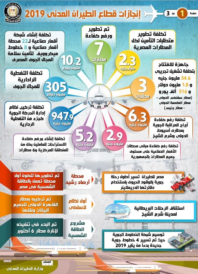 في إطار سلسلة رصد إنجازات الحكومة خلال العام: بالإنفوجراف... حصاد قطاع الطيران المدني في عام 2019 تمكن قطاع الطيران المدني من تحقيق العديد من الإنجازات الملموسة على أرض الواقع خلال عام 2019، ومن ضمنها تطوير ورفع كفاءة العديد من المطارات وافتتاح أخ ...المزيد من التفاصيل